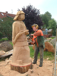 Feuerwehrmann Johannes Nagel „modellierte“ mit der Motorsäge im Laufe von dreißig Arbeitsstunden