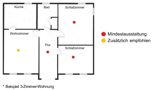Rauchmeldern ausgestattet werden (1× Schlafzimmer, 1× Kinderzimmer, 1× Flur).